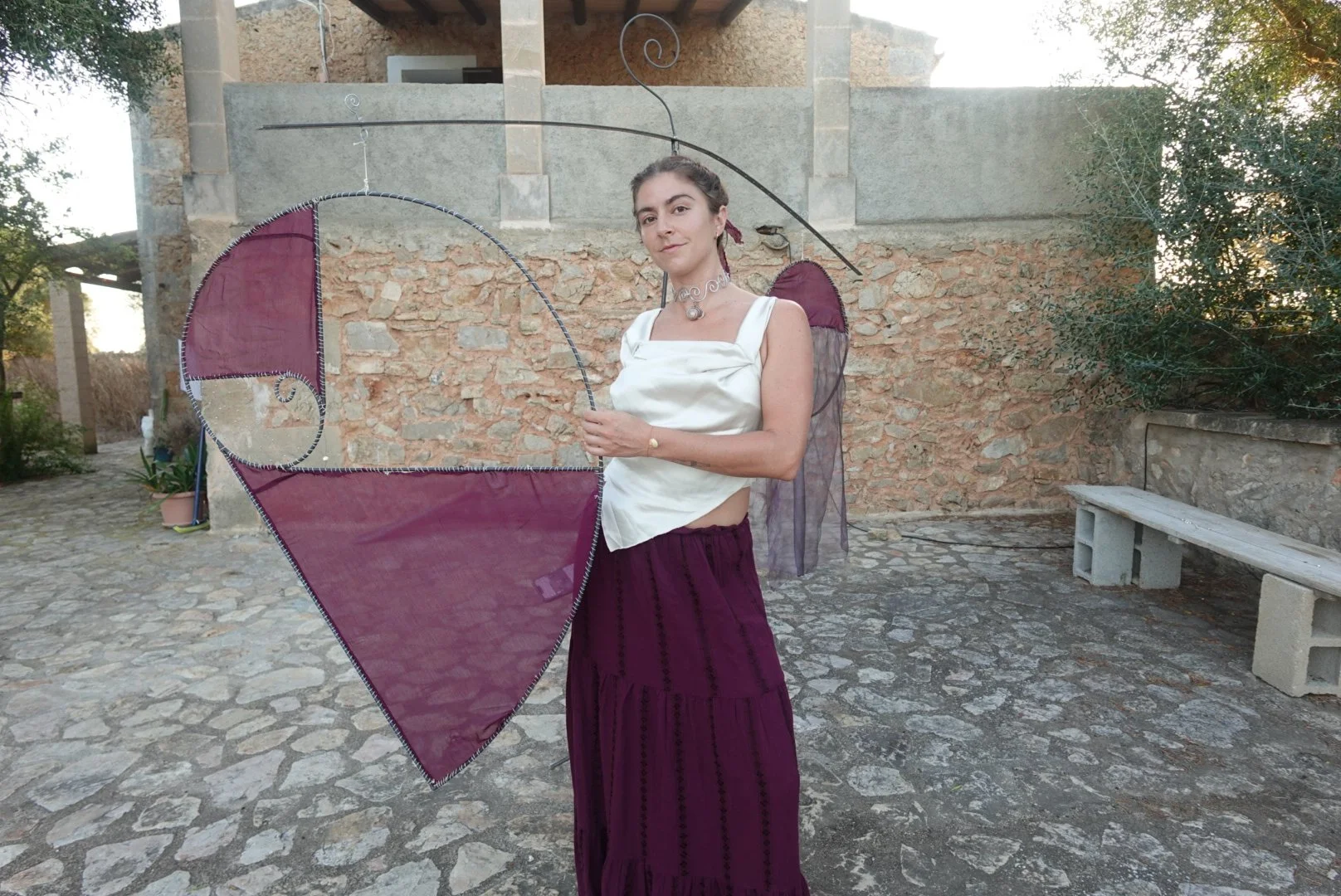 She explores the human condition through kinetic sculpture, photography, and movement.